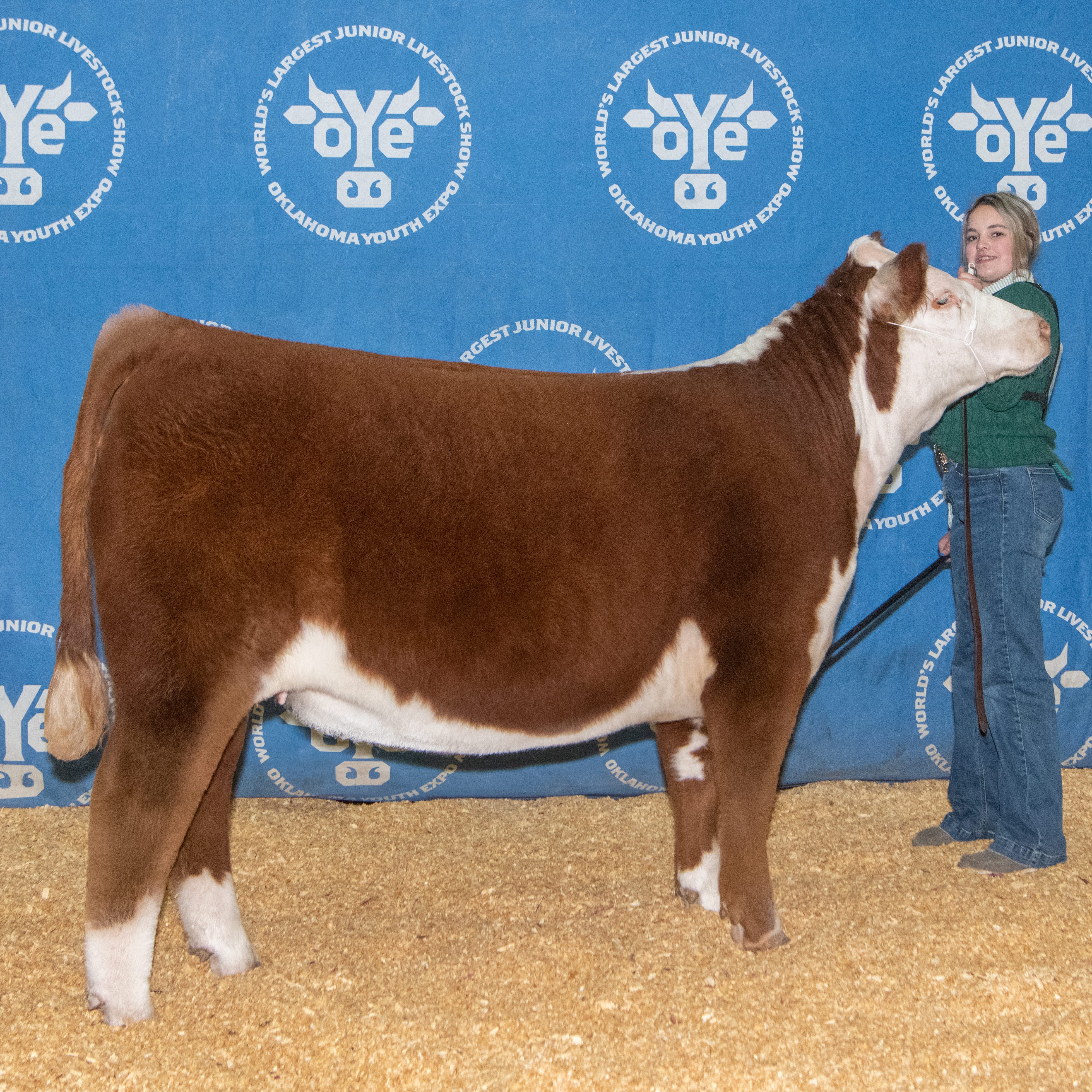S G032 DANIELLA 208K- Champion Hereford Heifer- Kade Minor Memorial – Sold by Sidwell, C3